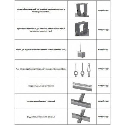 Светильники могут быть объединены в единую линию, с помощью соединительных компонентов. Стоимость каждого компонента 100 рублей.