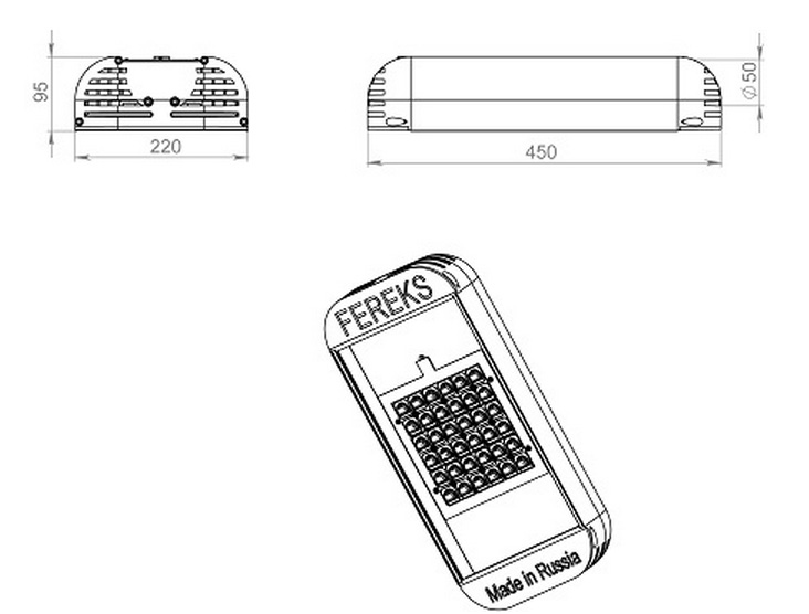 Является прямой заменой светильников РКУ и ЖКУ с ртутной лампой ДРЛ 250.