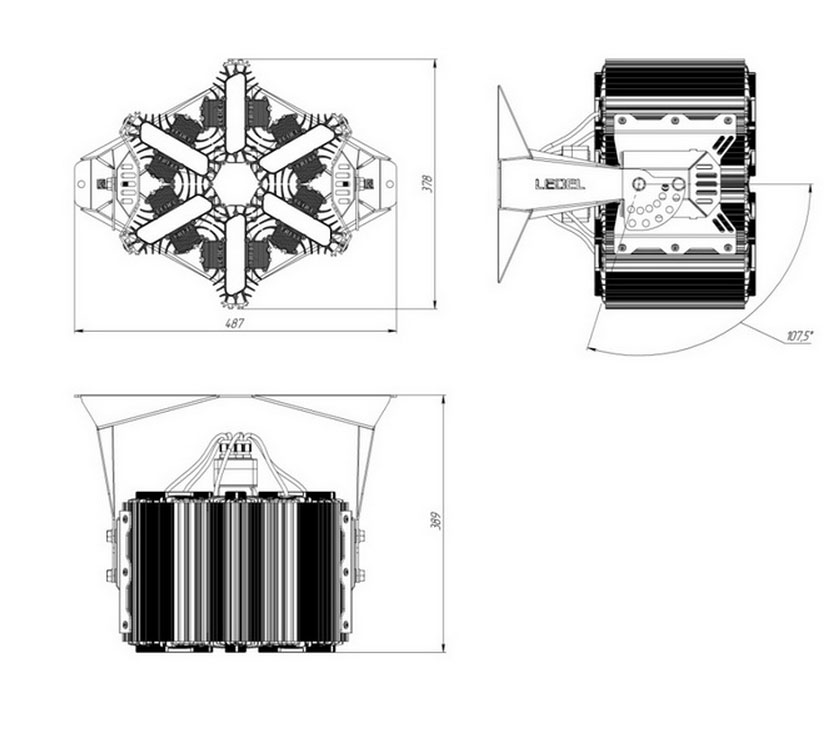 Светодиодный прожектор L-lego 330 banner предназначен для освещения больших промышленных цехов и складов, используется для установки на мачты, для освещения логистических развязок, стадионов и т.д. Максимальная высота установки 50 метров.